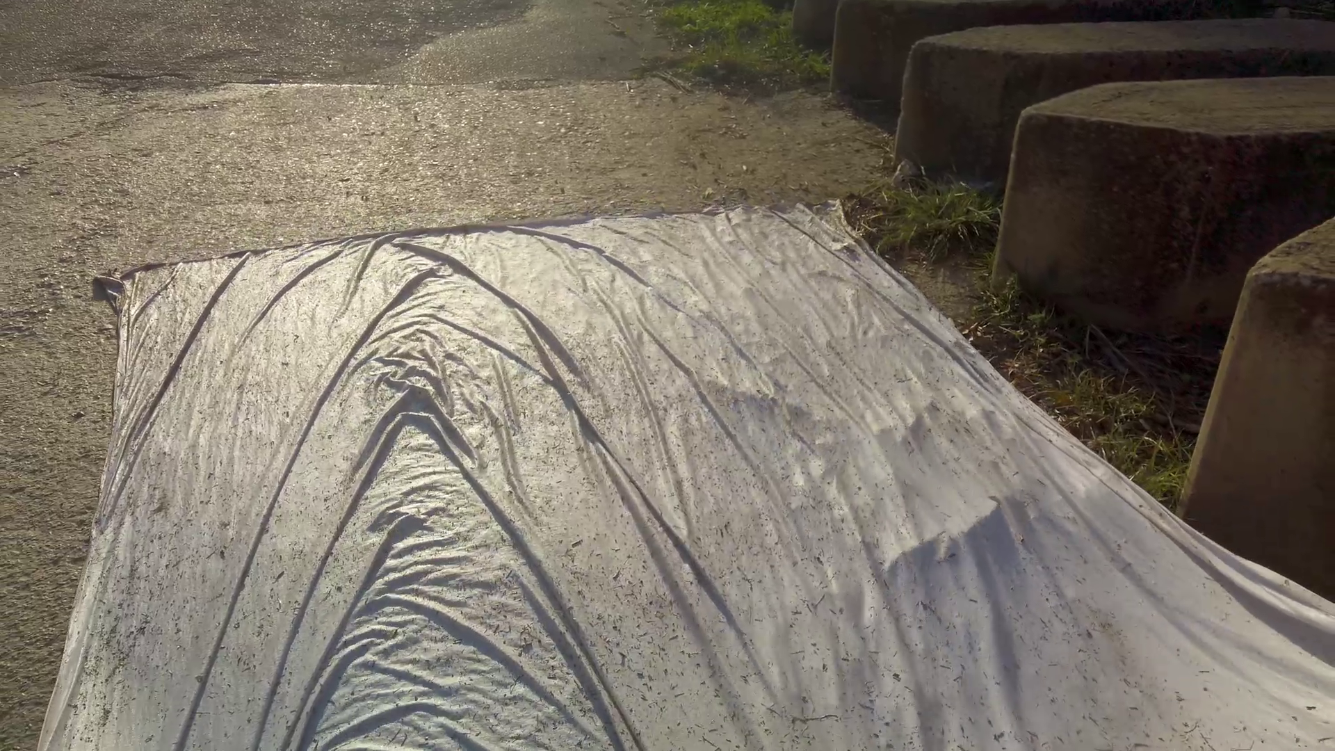 Acció realitzada amb tela sobre els blocs de marès a Son Gotleu, Palma