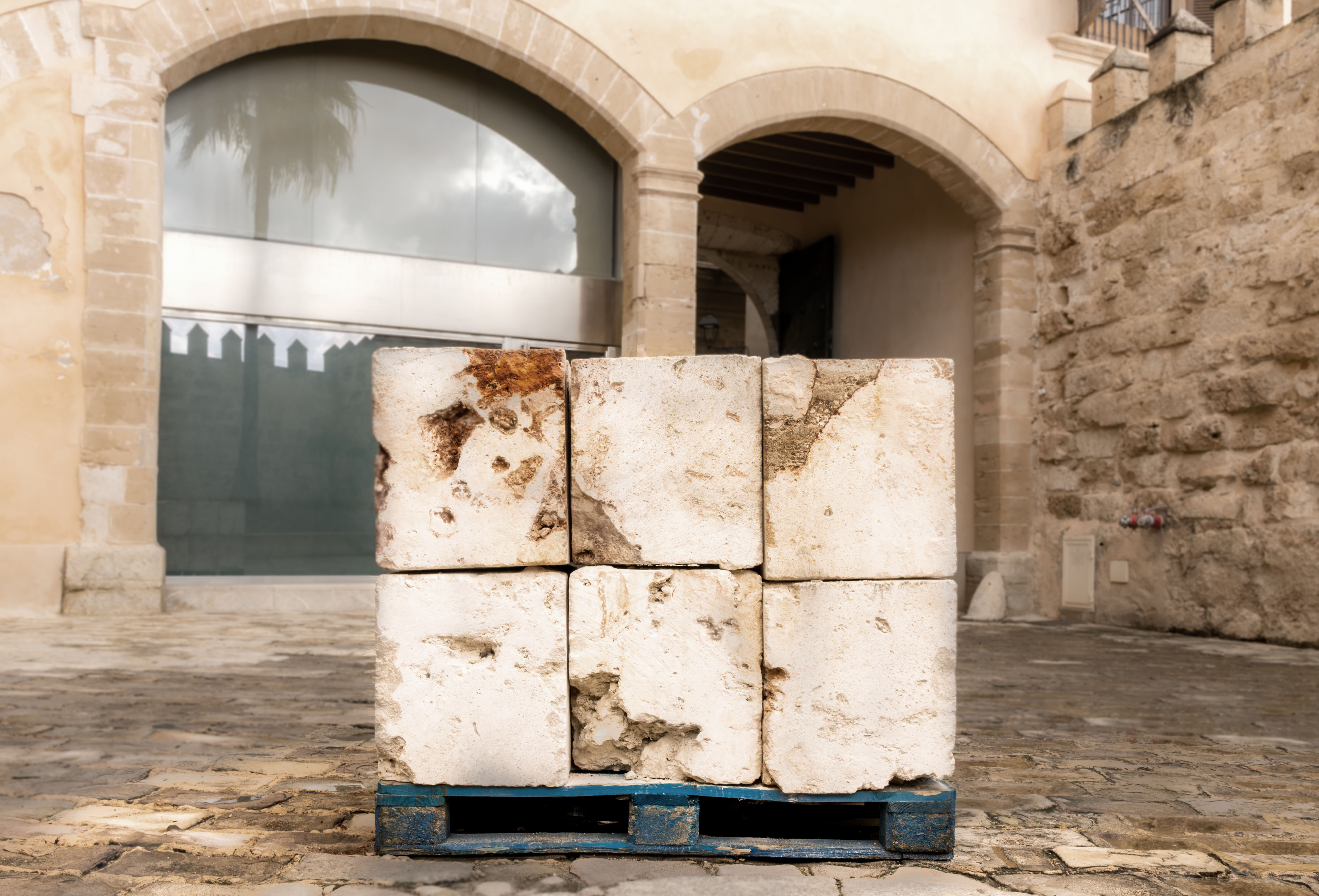 Acción realizada con tela sobre bloques de marès en Son Gotleu, Palma
